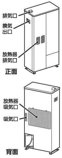 周囲の確認 月に1回程度、発電ユニットと熱源機の周辺に異常がないことを確認してください。 機器の周囲に可燃物および、障害物がないことを確認してください。 機器の排気口や吸気口、換気出口が塞がれていないことを確認してください。 据付金具が緩んでいないことを確認してください。 熱源機の「周囲の確認」については、熱源機の取扱説明書をご参照ください。