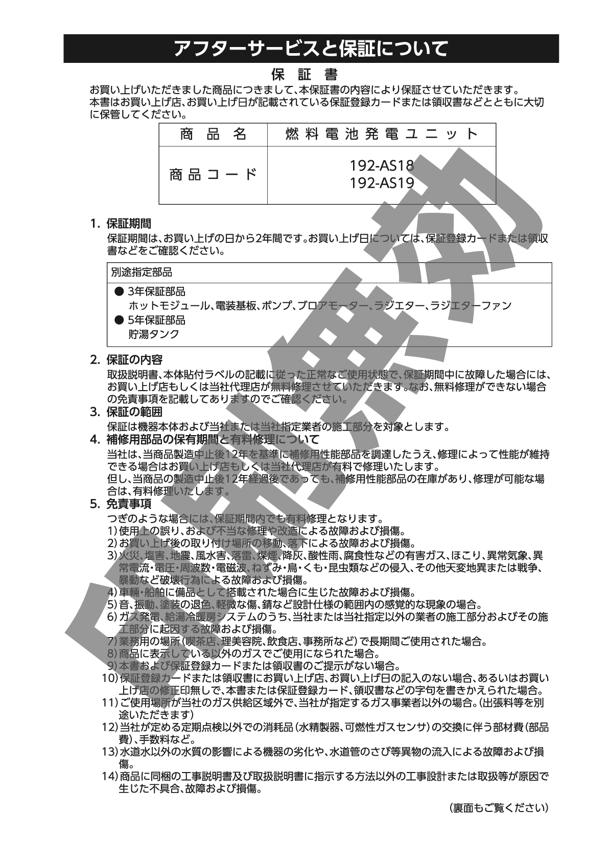 エネファーム type S 燃料電池発電ユニット 取扱説明書