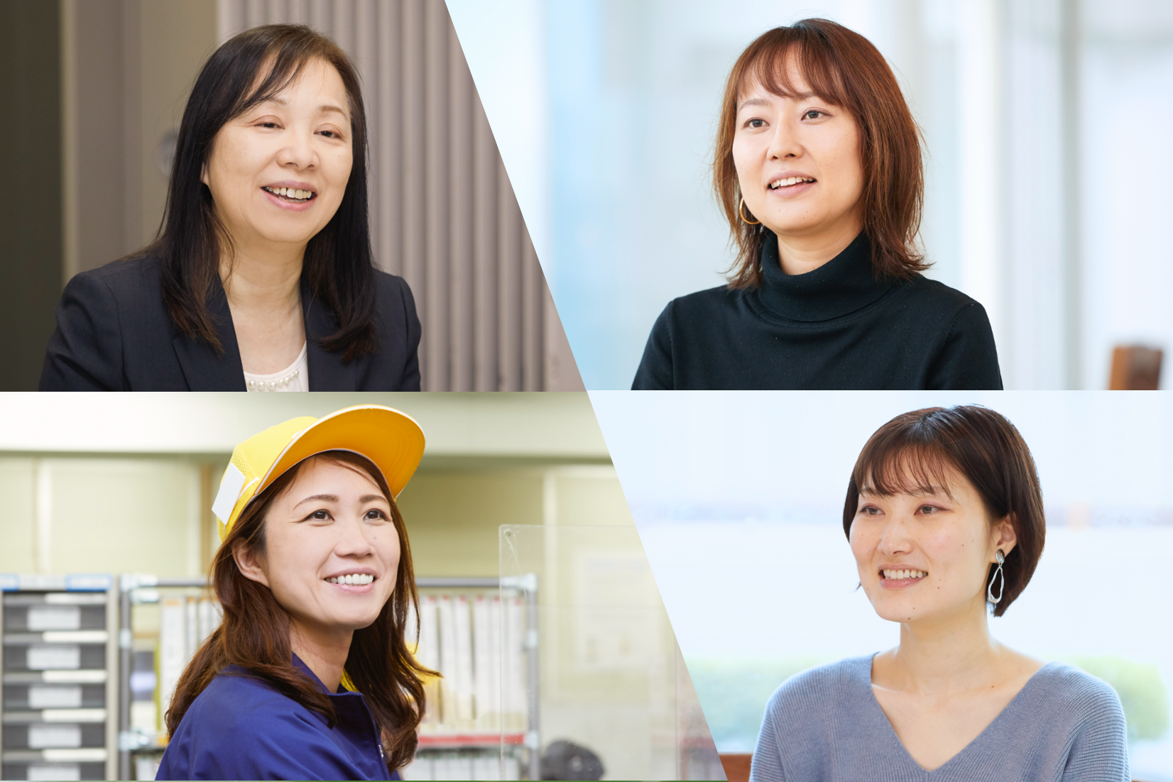 アイシンには、「性別や年代問わず、個々が活躍できる会社になるのがベストである」と考え、行動する文化が根づいています。ここに登場する4人の女性たちも、それぞれのライフイベントを迎えながら、個としてのキャリアを磨いてきました。そのなかで、自身の仕事、職場環境、生活などについて、どんな想いを抱いてきたのでしょうか。