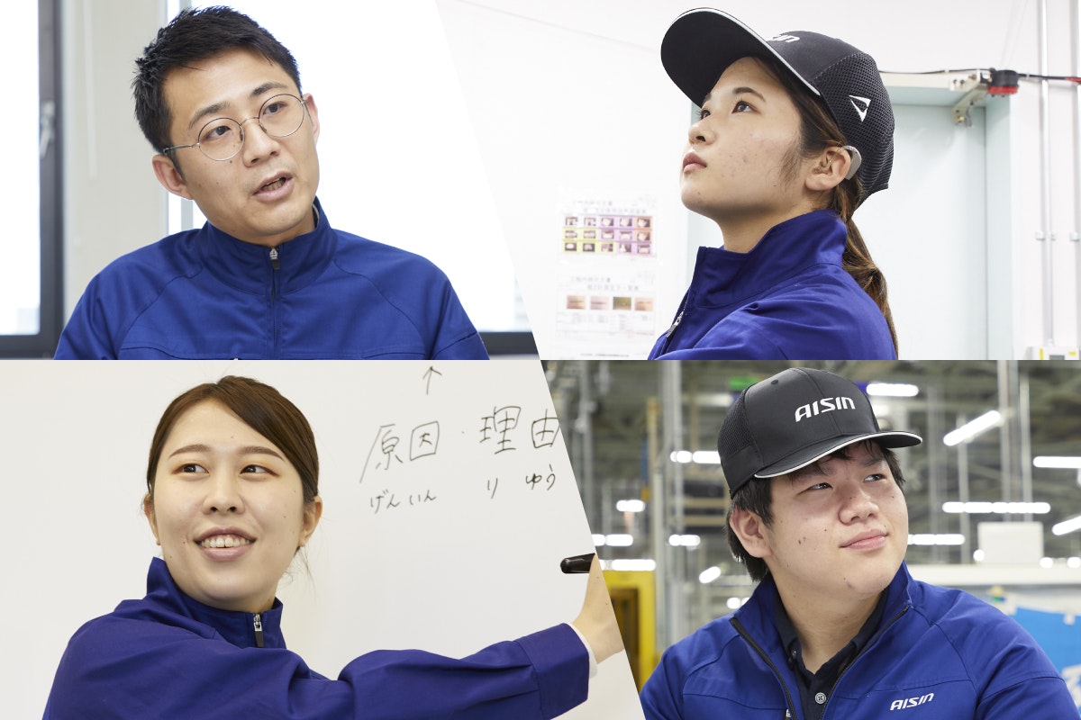 I.M:コミュニケーションを取ることを大切にしています。最初は慣れない環境で、難しい言葉や、作業を覚えていくのが大変でしたが、作業の合間で先輩たちと会話したり、分からないことはすぐに質問したりして、仕事に慣れていきました。先輩はみんな優しく教えてくれましたし、今では、楽しく働けています。音声を文字化するアプリや筆談用のボードなどのツールも充実しているので、障がいがあっても、コミュニケーションは取りやすい環境です。楽しく働けて、やりがいもあるアイシンで一緒に頑張りましょう!