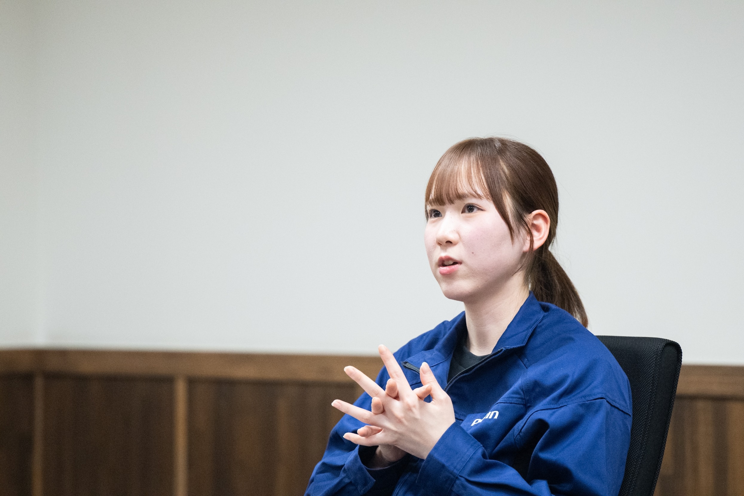 入社当初、私が最も苦労したのはコミュニケーションでした。職場には女性や同世代が少なく、人見知りの性格もあって、なかなか職場の人たちとうまく話ができませんでした。でも、監督者の方々が朝礼や集合ミーティング、QC会合、改善活動などを通じて、私が発言する機会を意識的に作ってくださったんです。最初は少し怖いと思っていた上司も、実はユーモアあふれるすごく優しい人だとわかりました。今では職場の仲間との意見交換や日常の会話も自然にできるようになり、コミュニケーションの壁を乗り越えることができました。