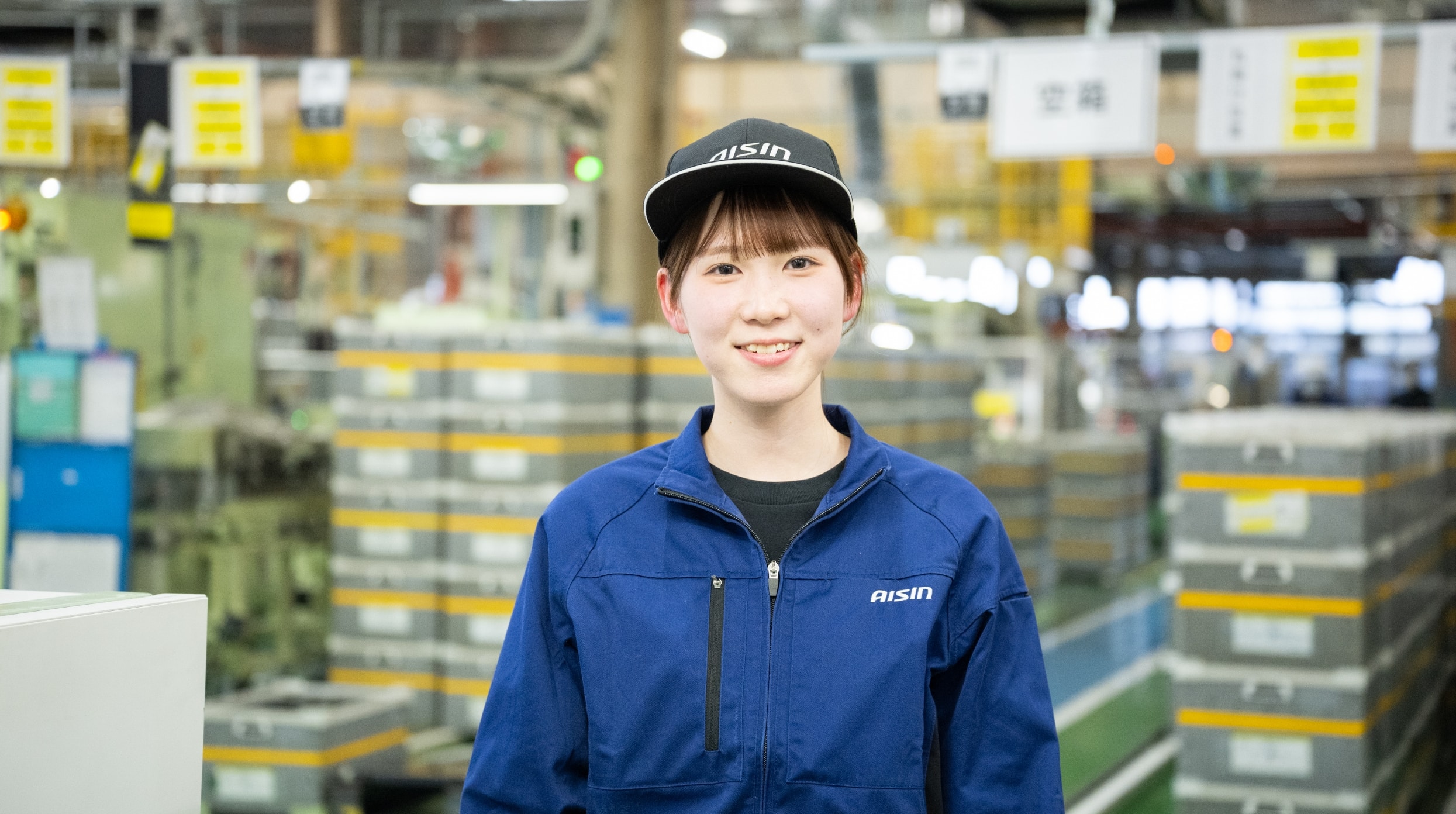 「みんなに近づきたい」学生時代、尊敬できる仲間に囲まれて抱いた思いが、今も彼女の原動力です。アイシンに新卒入社後、樹脂成形課でシリンダーヘッドカバーの組付を担当。人見知りを乗り越え、品質管理検定三級に挑戦し、女性目線での改善提案を行う。成長を続ける彼女が、働きやすい職場づくりへの思いを語ります。